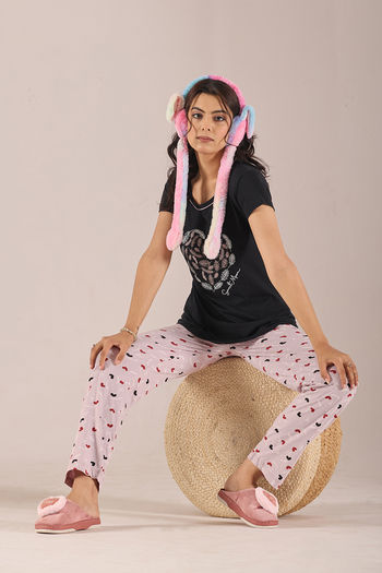 Buy Sweet Moon Knit Cotton Pyjama Set - Nude Violet Black