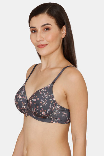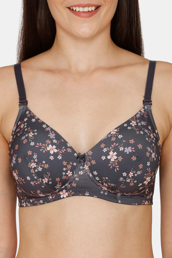 Coucou Essentials Padded Non Wired Medium Coverage T-Shirt Bra - Woodland Grey Print