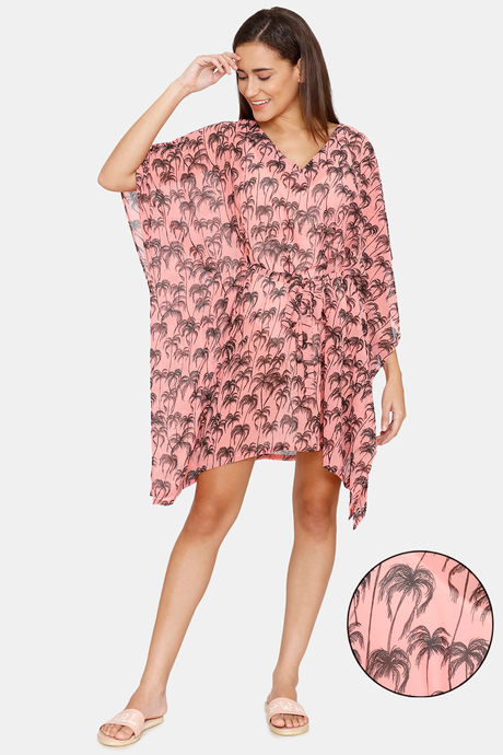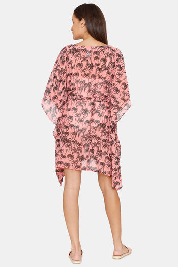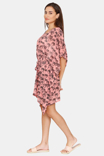 Coucou Knee Length Slip On Printed Poncho With Waist Tie Up - Pink Lemonade