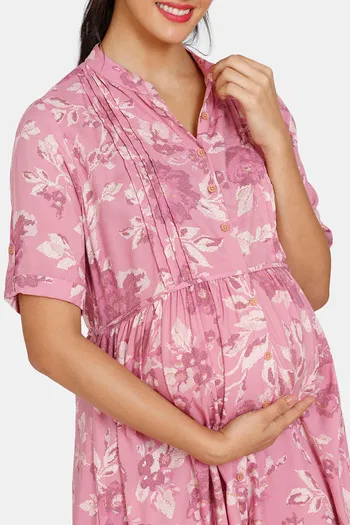 Coucou Maternity Woven Mid Length Nightdress - Blush