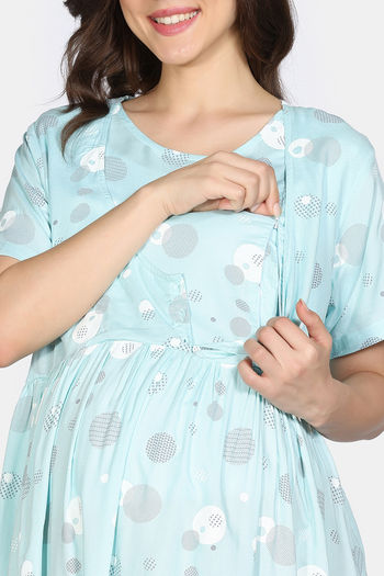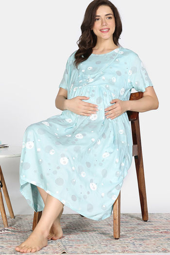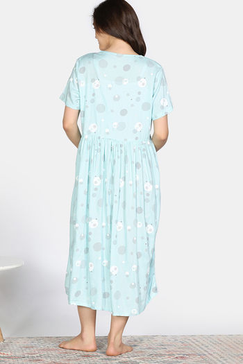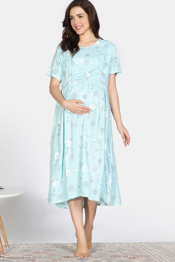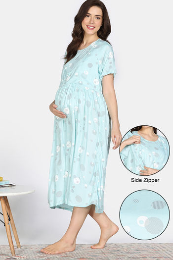 Coucou Maternity Woven Mid Calf Length Loungewear Dress With Side Zipper - Grey