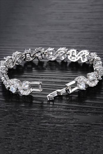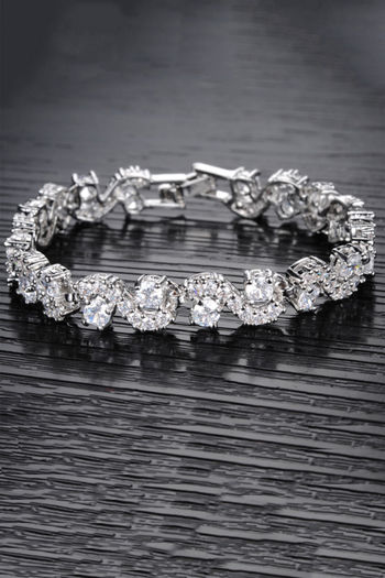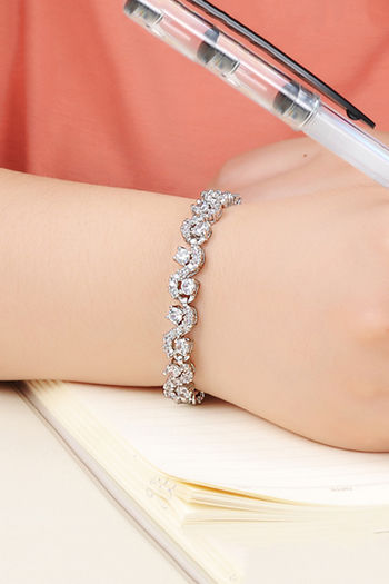 Yellow Chimes Crystal White Silver Plated Cubic Zirconia Bracelet
