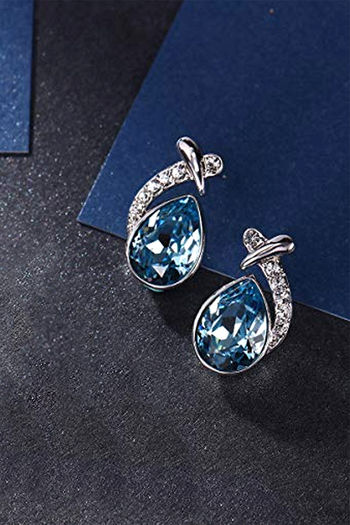 Yellow Chimes Crystals From Swarovski Blue Crystal Designer Studs Earrings