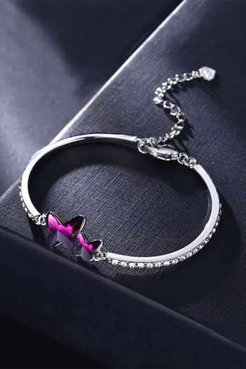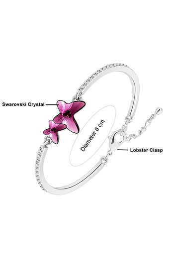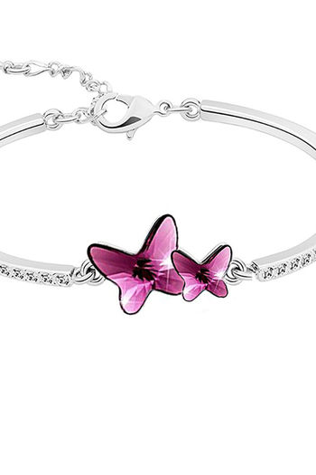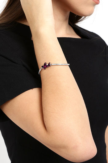Yellow Chimes Crystals From Swarovski Silver Toned Purple Butterfly Designer Bracelet