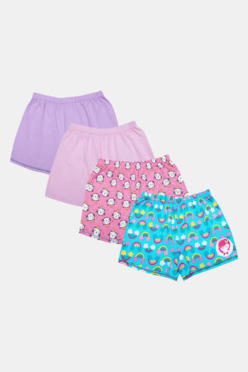 D'chica Boyshorts With Cat and Rainbow Print-Bop Wash Cotton (Set of 4) - Multicolor