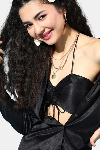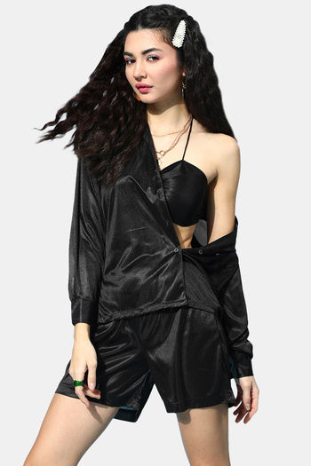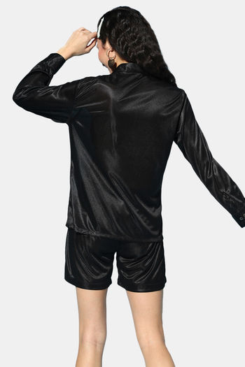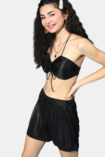 Da Intimo Three Piece Satin Bra Co-ord Loungewear Sets - Black