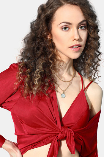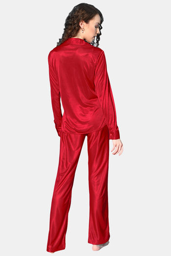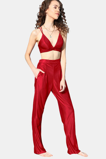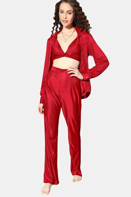Da Intimo Three Piece Satin Bra Co-ord Loungewear Sets - Maroon
