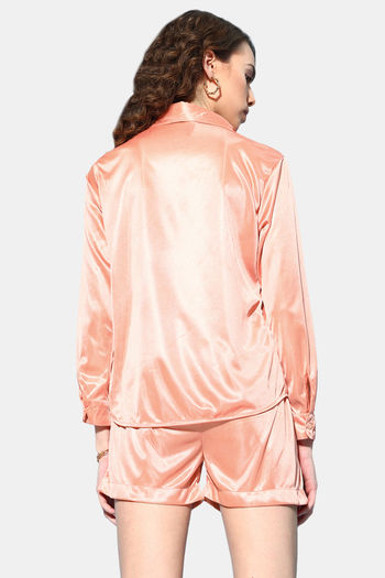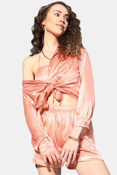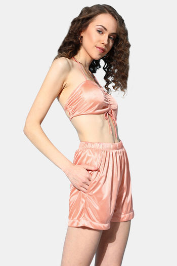 Da Intimo Three Piece Satin Bra Co-ord Loungewear Sets - Peach