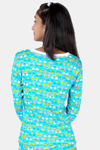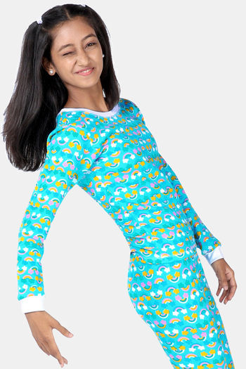 Dchica Girls Polyester Cotton Loungewear Top - Blue
