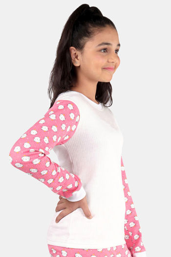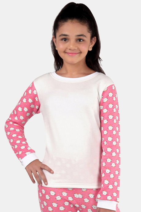 Dchica Girls Polyester Cotton Loungewear Top - Pink