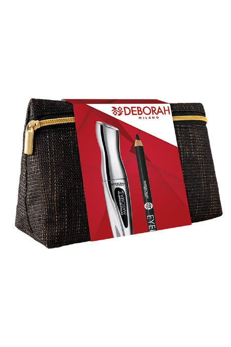 Deborah Milano Black Pochette With Extraordinary 5-In-1 Mascara + Black Eyeliner Eyepencil (1.3 g & 12 ML)