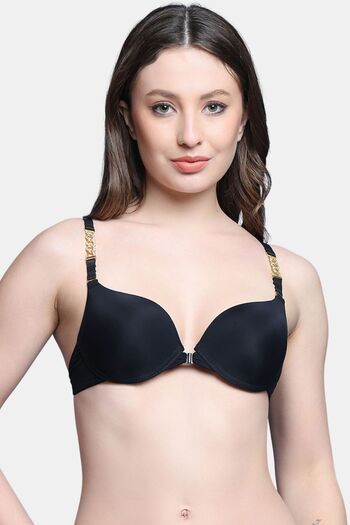 PrettyCat Pushup Padded Underwired Sexy Front Open Bra - Black