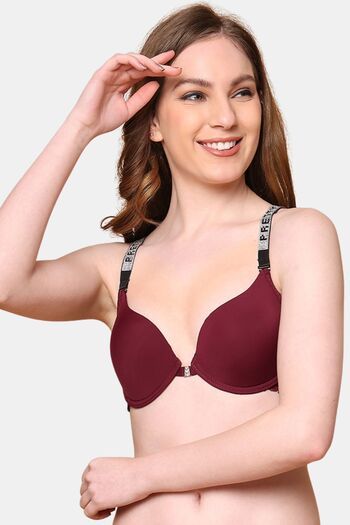 PrettyCat Lightly Padded T-shirt Bra With Shine Strap for Women & Girls - Wine