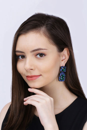 Yellow Chimes Designer Fashion Party Wear Square Crystal Drop Earring
