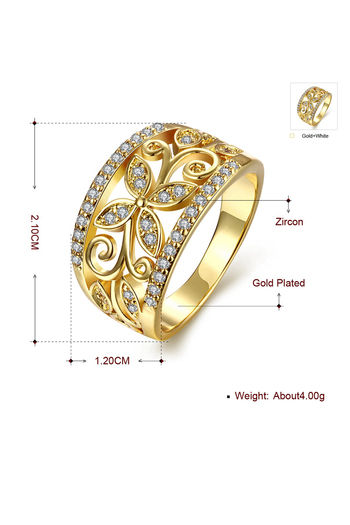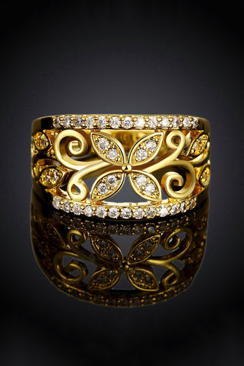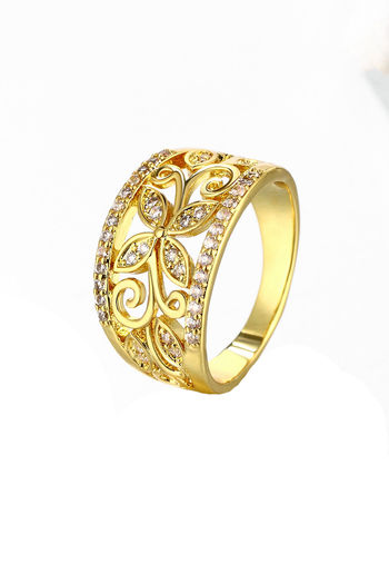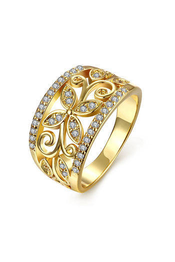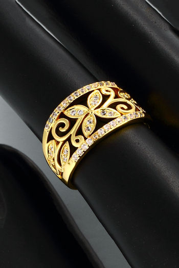 Yellow Chimes Designer Golden Flower Crystal studded Band Style Finger Ring