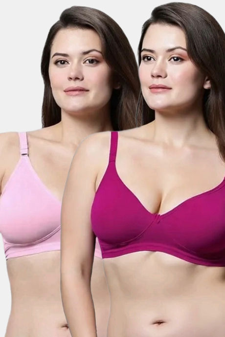 Eden Double Layered Non-Wired Full Coverage T-Shirt Bra (Pack of 2) - Multicolor