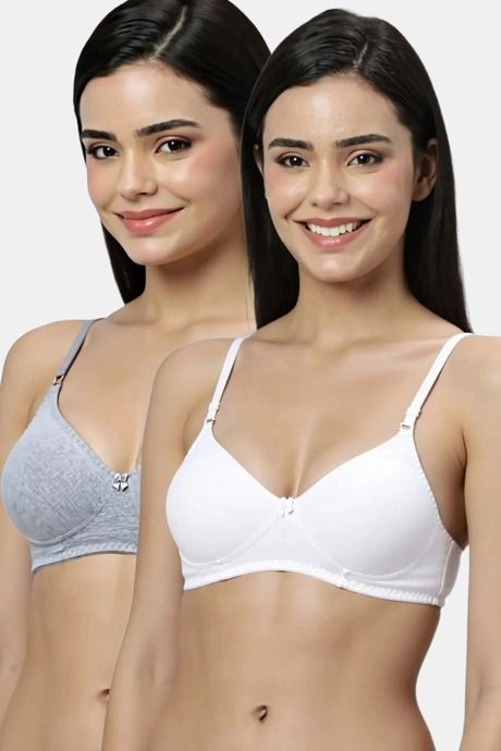 Eden Double Layered Non-Wired Full Coverage T-Shirt Bra (Pack of 2) - Multicolor
