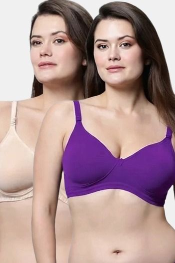 Eden Double Layered Non-Wired Full Coverage T-Shirt Bra (Pack of 2) - Multicolor