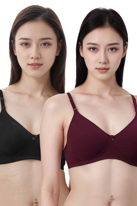 Eden Padded Non-Wired Full Coverage T-Shirt Bra (Pack of 2) - BlackMaroon