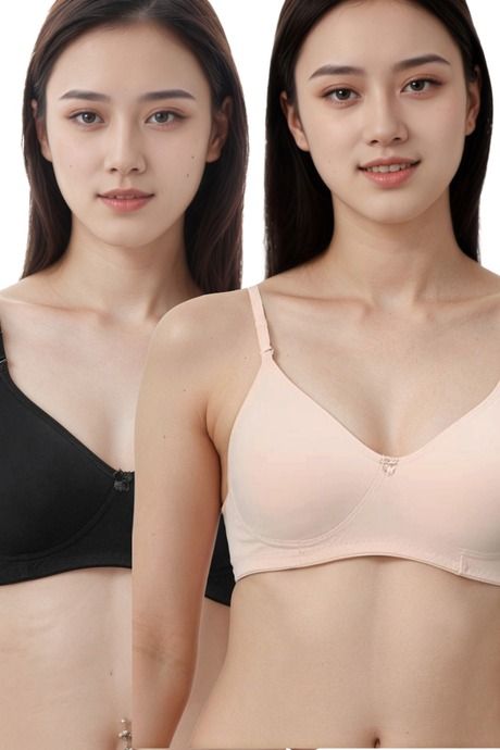 Eden Padded Non-Wired Full Coverage T-Shirt Bra (Pack of 2) - BlackPeach