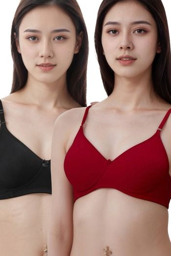 Eden Padded Non-Wired Full Coverage T-Shirt Bra (Pack of 2) - BlackRed