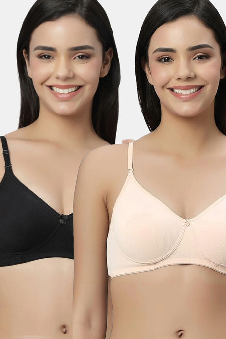 Eden Padded Non-Wired Full Coverage T-Shirt Bra (Pack of 2) - BlackSkin
