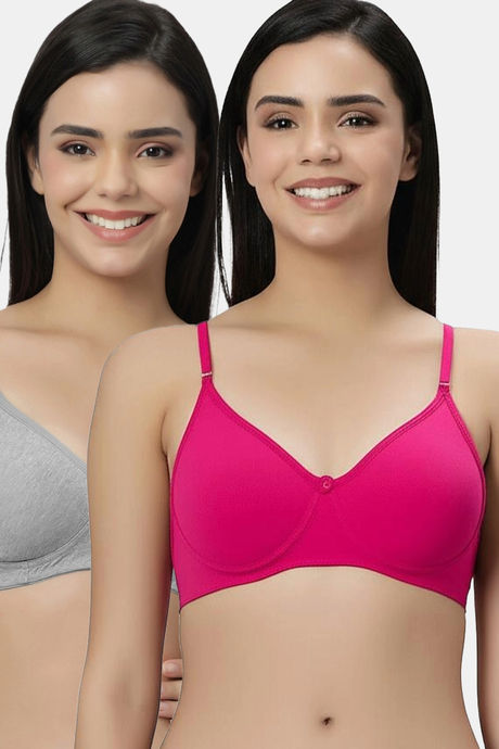 Eden Padded Non-Wired Full Coverage T-Shirt Bra (Pack of 2) - GreyMagenta