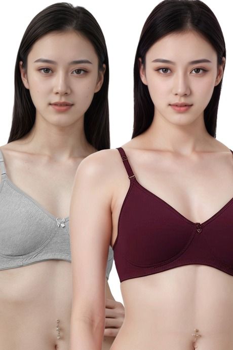 Eden Padded Non-Wired Full Coverage T-Shirt Bra (Pack of 2) - GreyMaroon