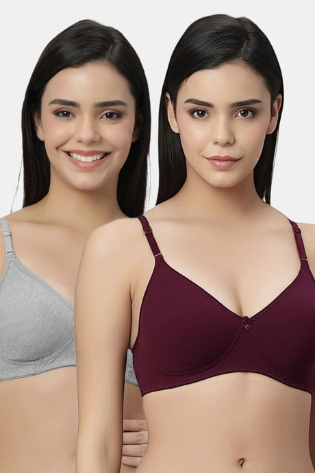 Eden Padded Non-Wired Full Coverage T-Shirt Bra (Pack of 2) - GreyMaroon