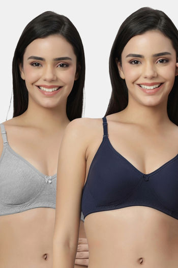 Eden Padded Non-Wired Full Coverage T-Shirt Bra (Pack of 2) - GreyNavyblue