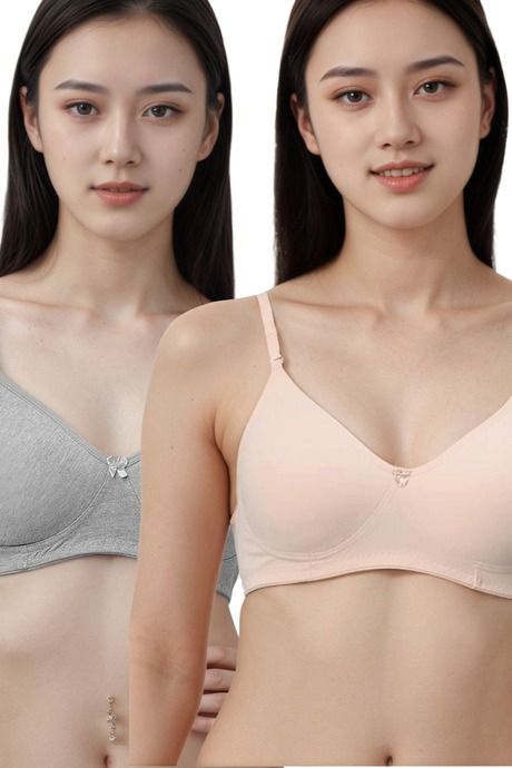 Eden Padded Non-Wired Full Coverage T-Shirt Bra (Pack of 2) - GreyPeach