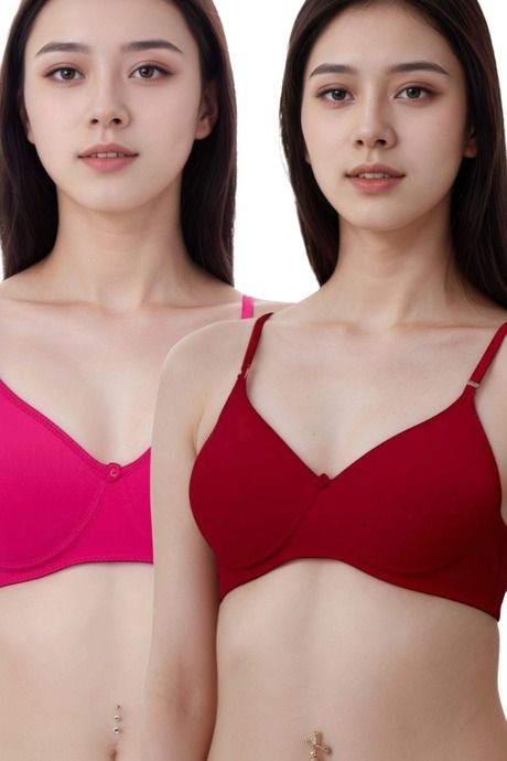 Eden Padded Non-Wired Full Coverage T-Shirt Bra (Pack of 2) - MagentaRed