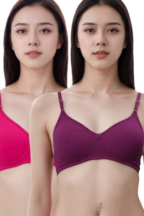 Eden Padded Non-Wired Full Coverage T-Shirt Bra (Pack of 2) - MagentaWine