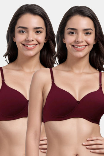 Eden Padded Non-Wired Full Coverage T-Shirt Bra (Pack of 2) - MaroonMaroon