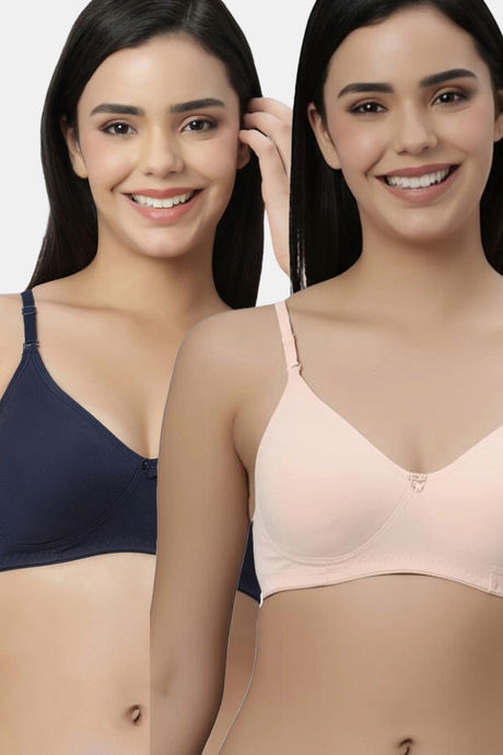 Eden Padded Non-Wired Full Coverage T-Shirt Bra (Pack of 2) - NavybluePeach