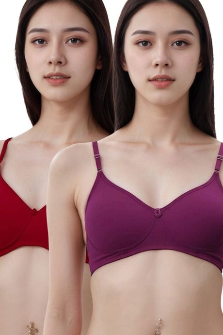 Eden Padded Non-Wired Full Coverage T-Shirt Bra (Pack of 2) - RedWine