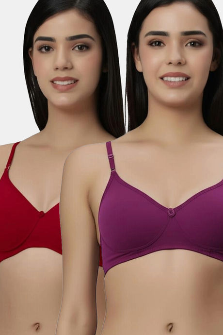 Eden Padded Non-Wired Full Coverage T-Shirt Bra (Pack of 2) - RedWine