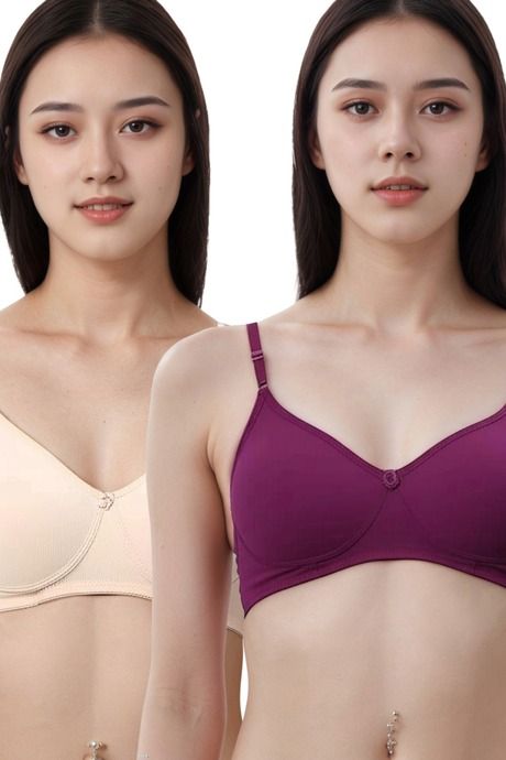 Eden Padded Non-Wired Full Coverage T-Shirt Bra (Pack of 2) - SkinWine