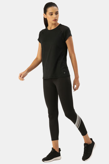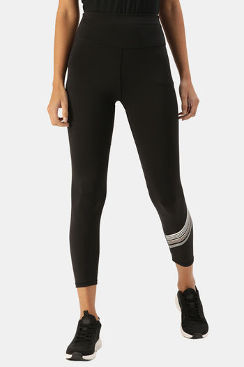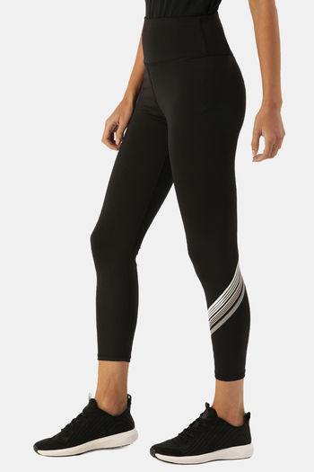 Enamor Hugged High Rise Track Pant - Jet Black W Stripe Graphic