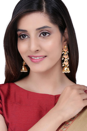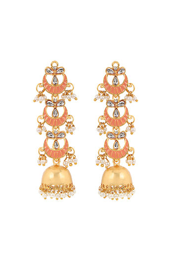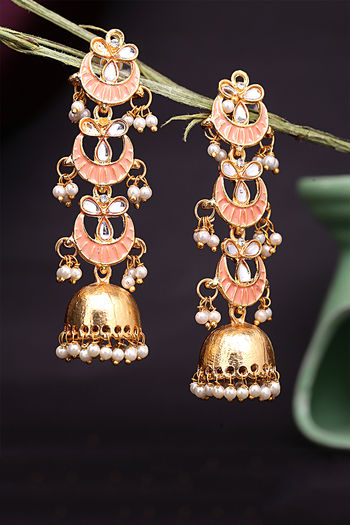 Yellow Chimes Ethnic Gold Plated Traditional Handcrafted Meenakari Peach Jhumka Earrings