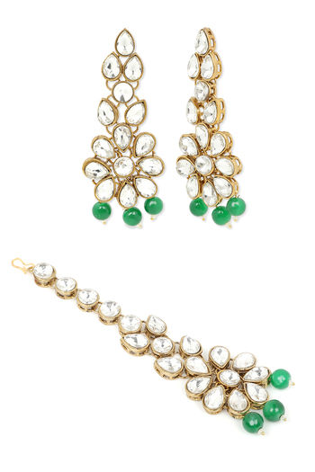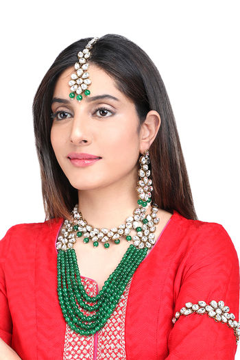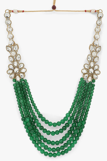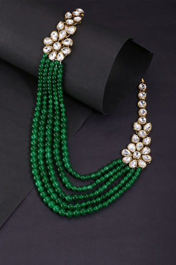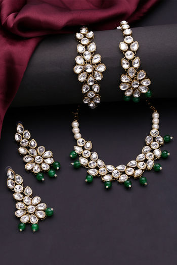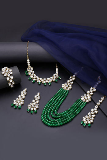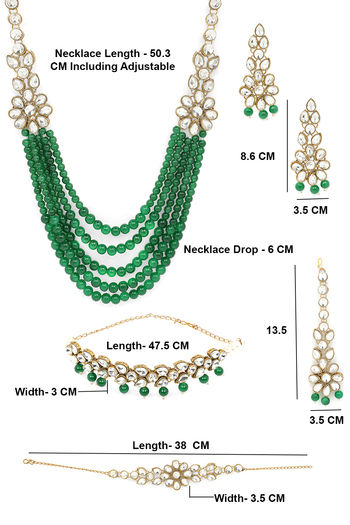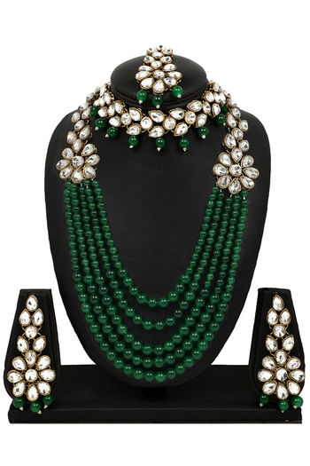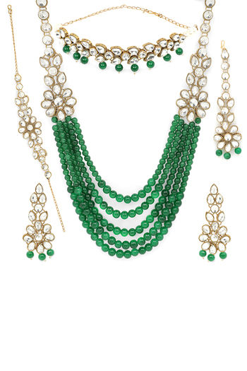 Yellow Chimes Ethnic Kundan Set Indian Traditional Green Pearl Multilayer Bridal Necklace Set - Green