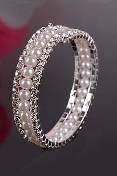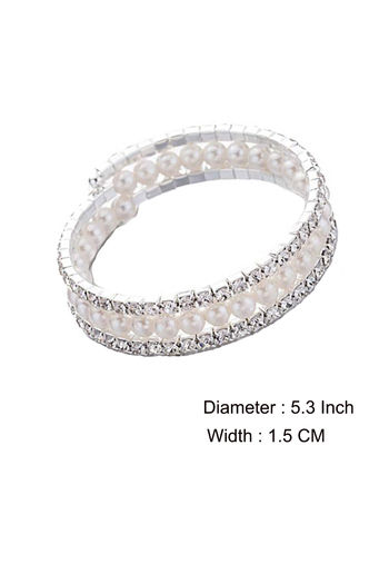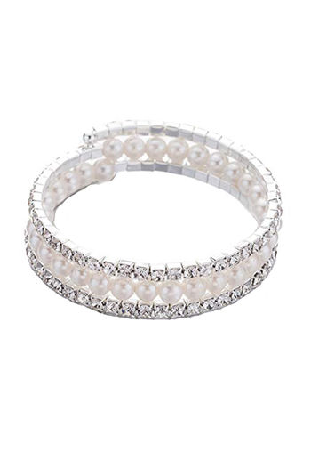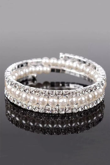 Yellow Chimes Exclusive Crystal Pearl Multi-Layer Silver Plated Adjustable Bracelets