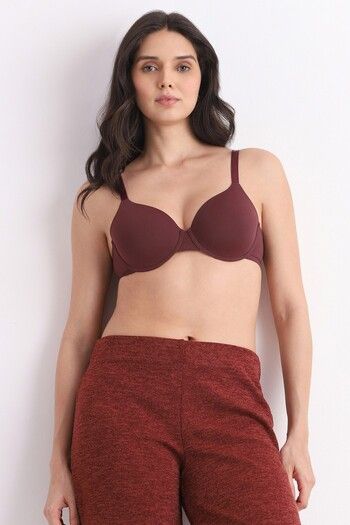 Buy Maroon Clothing Double Layered Non Wired Full Coverage Tshirt Bra - Brick