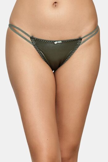 Buy PrettyCat Women’s Low Rise Satin Bikini Panty – Double Side Strap, Bow Accent - Green