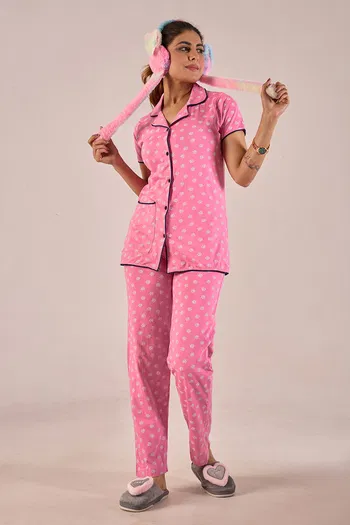 Buy Sweet Moon Knit Cotton Pyjama Set - Dark Pink