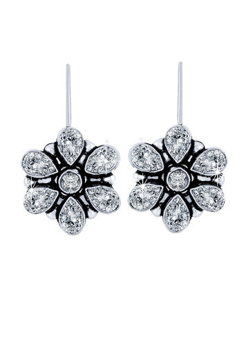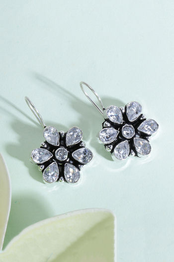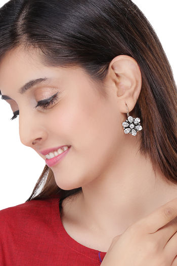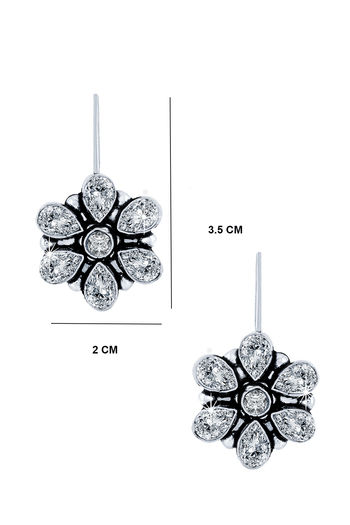 Yellow Chimes Exclusive Silver Oxidized Silver Floral Design Drop Earrings