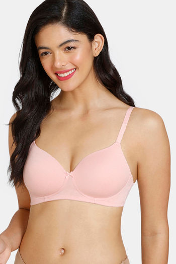 Buy Zivame Beautiful Basics Padded Non Wired 3/4th Coverage T-Shirt Bra - Powder Pink