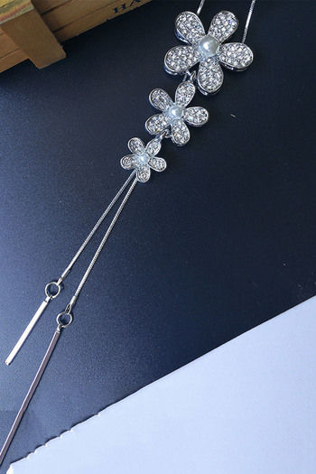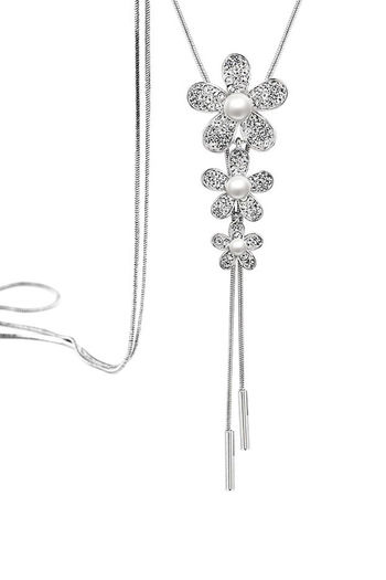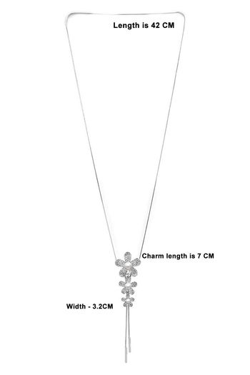 Yellow Chimes Floral Fancy Crystal Studded Pearl Silver toned Long Chain Pendant