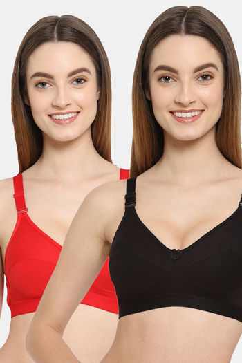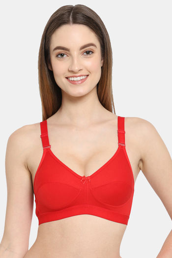 Floret Double Layered Non Wired 3/4Th Coverage T-Shirt Bra - Black Red
