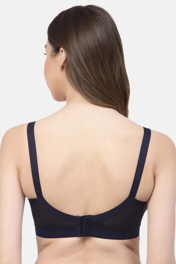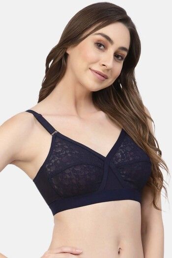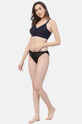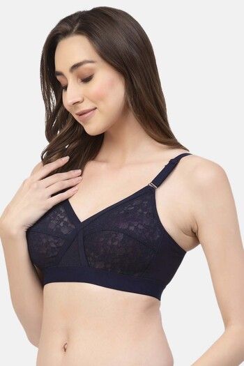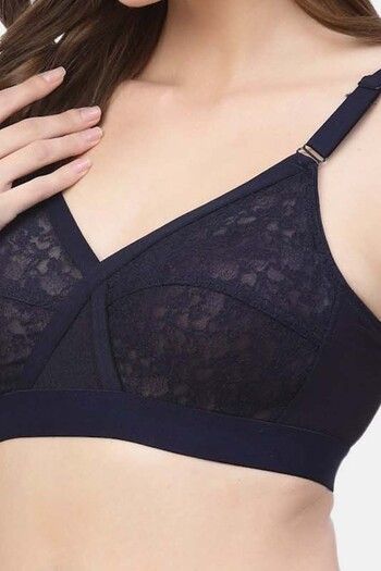 Floret Double Layered Non-Wired Full Coverage Lace Bra - Navy Blue